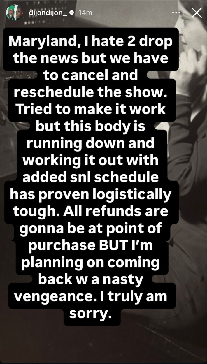 On Monday Dijon canceled Friday’s show in Silver Spring, MD due to the physical and logistical challenge of adding SNL into his week. Tonight is Dijon’s third NYC show at Terminal 5 following two at Brooklyn Paramount. Watch the SNL teaser below