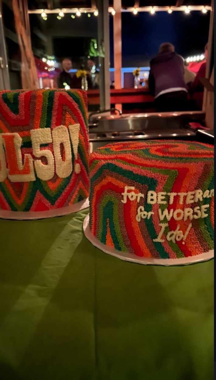 Morgan Nagler and Farmer Dave Scher no performed in the ceremony, and Lewis sang the Postal Service’s “Such Great Heights” with Ben Gibbard and Phantom Planet’s “California” with Alex Greenwald for guests at the party. Congrats Jenny!